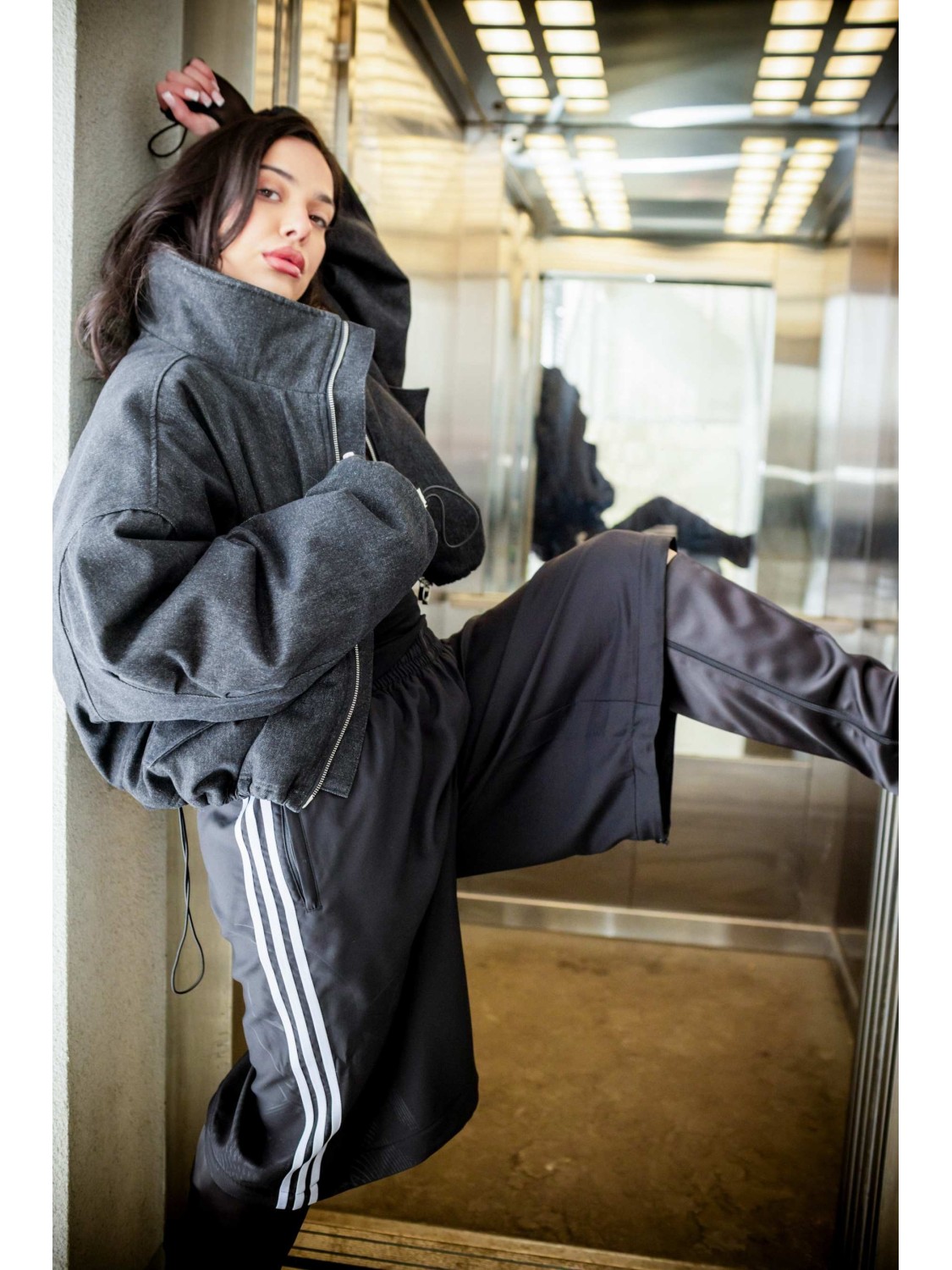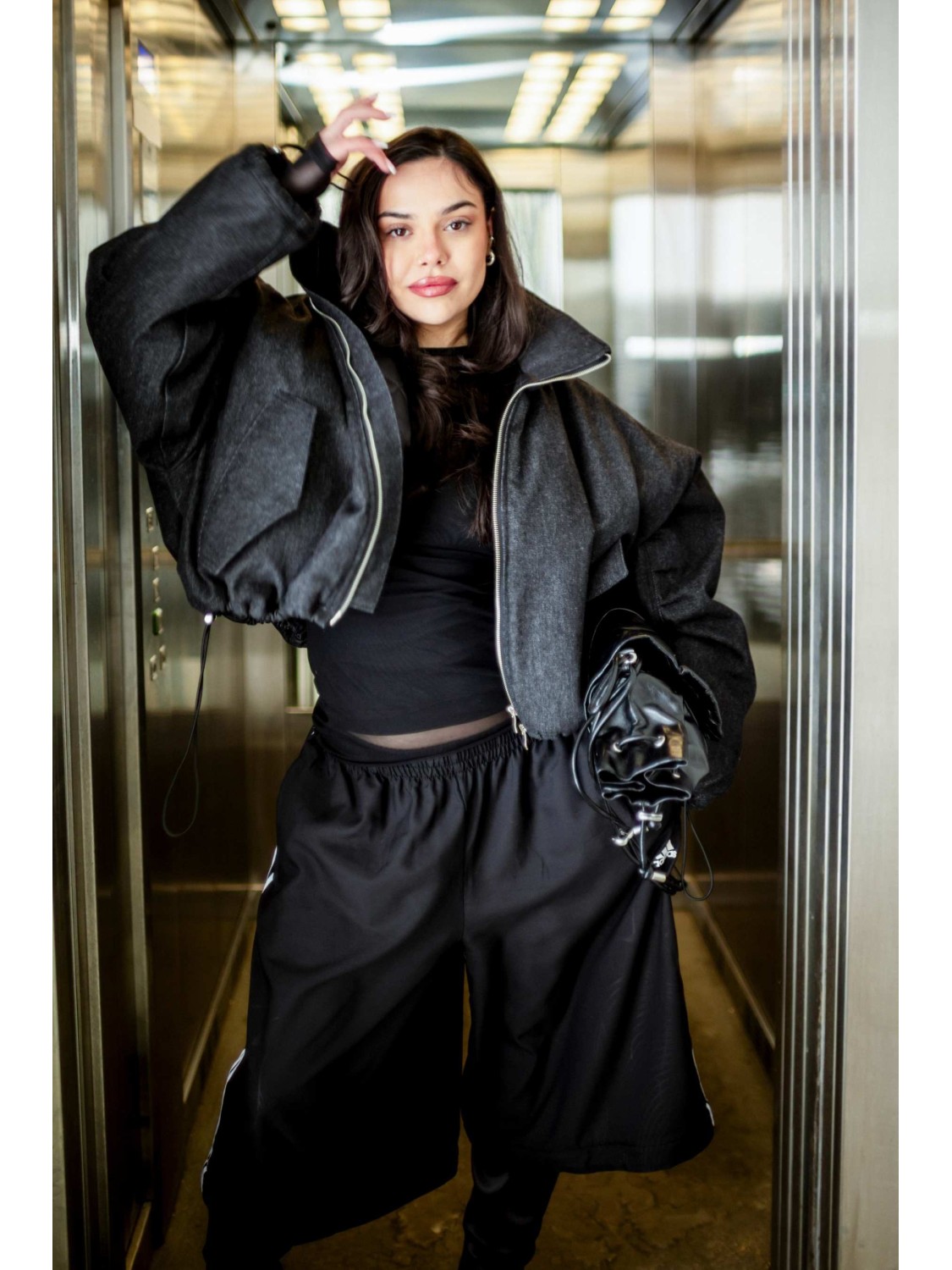 Paula ma 175cm i na co dzień nosi rozmiar 34/36 (model kurtki pasuje na każdą sylwetkę niezależnie od rozmiaru jaki nosisz)